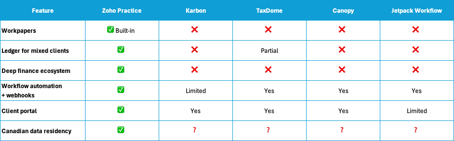Zoho Practice is emerging as one of the most powerful modern practice management platforms available to Canadian firms because it delivers: