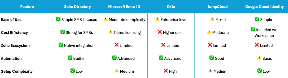 Zoho Directory solves these problems by acting as a central control layer for all user access.