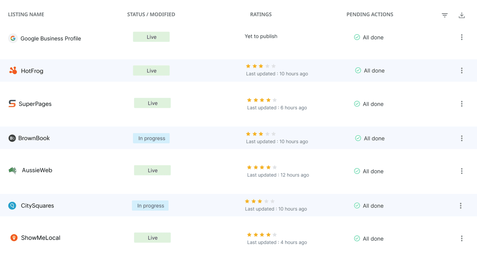 Zoho Publish is a centralized platform that helps businesses manage how they appear, and are perceived, across online listings and review platforms.