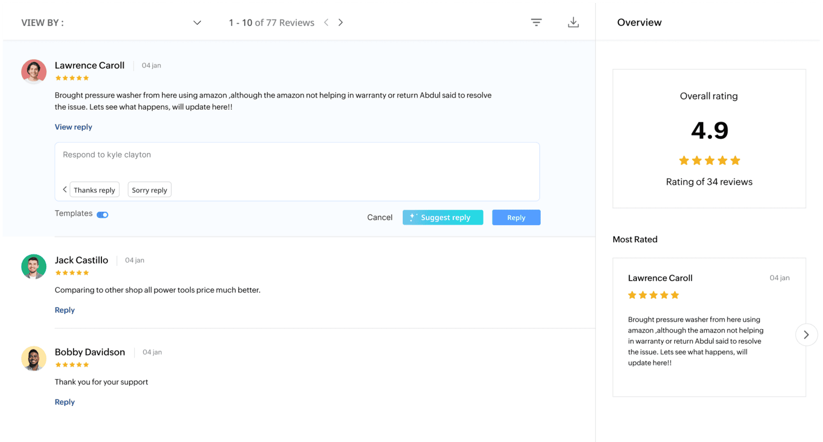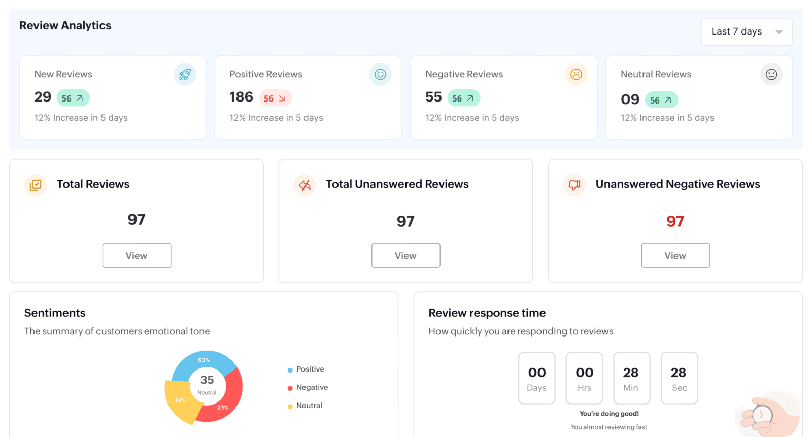When integrated with Zoho CRM, this becomes a reputation KPI leadership can act on.